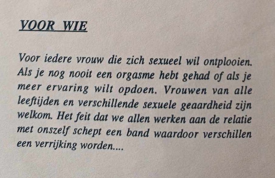Het maakt niet uit of je de eerste jaren geleden gevolgd hebt of al een privé sessie met mij hebt gedaan. Onze seksualiteit verandert gedurende ons leven en er is altijd meer te ontdekken. Ook leeftijd en geaardheid doen er niet toe. Iedere vrouw die haar seksualiteit, intimiteit en liefde voor haarzelf wil ontwikkelen heeft hier baat bij. Door je seksuele zelf te ontwikkelen zal je ook meer grip op je leven ervaren.